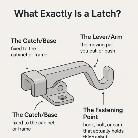 A latch doesn’t always “lock.” Its main job is to hold things closed, reduce rattling, and give stability. Some latches also add sealing against dust or vibration.