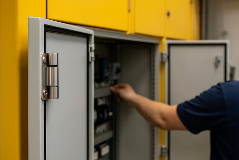 Switchgear systems, automation racks, PLC enclosures… all need a door that opens fully so a technician can reach wiring and sensors without dismounting the panel.
