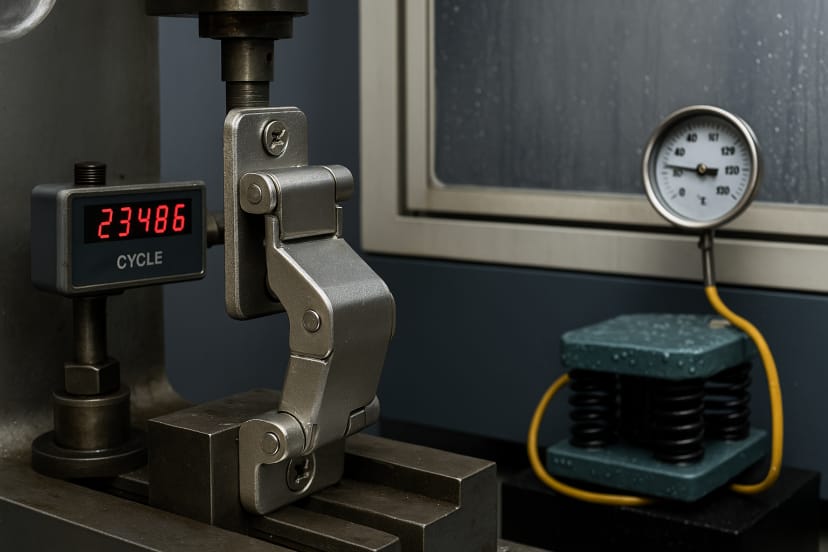 Every good hinge should still pass the ISO 9227 salt-spray test—at least 48 to 72 hours without rust. If it doesn’t, it’s not built for real work. Fornd does well in this.