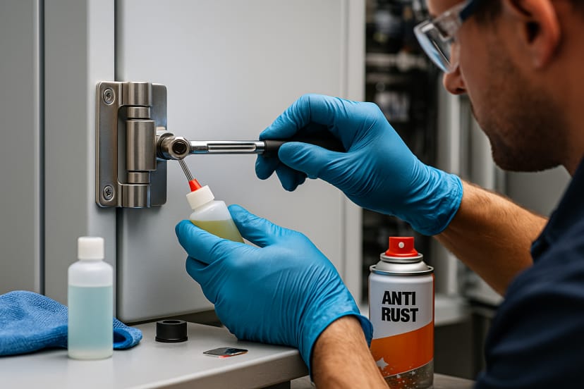 Technicians can replace hinges without dismantling the entire cabinet frame, saving downtime in field maintenance.