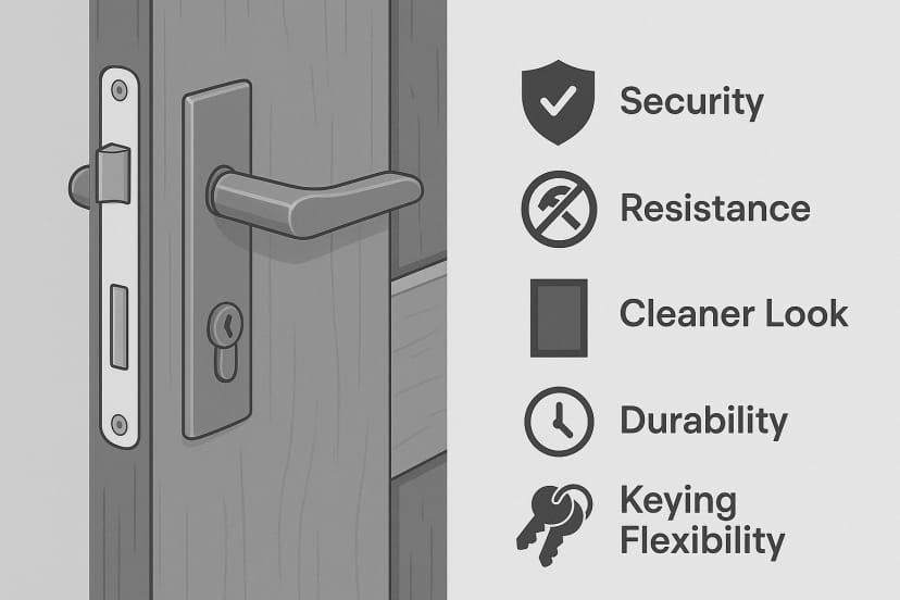 One clear limitation: hollow or lightweight doors. If the door doesn’t have enough depth, you can’t cut the pocket needed for a mortise lock. In that case, a surface-mounted or cylindrical lock is usually the better choice.